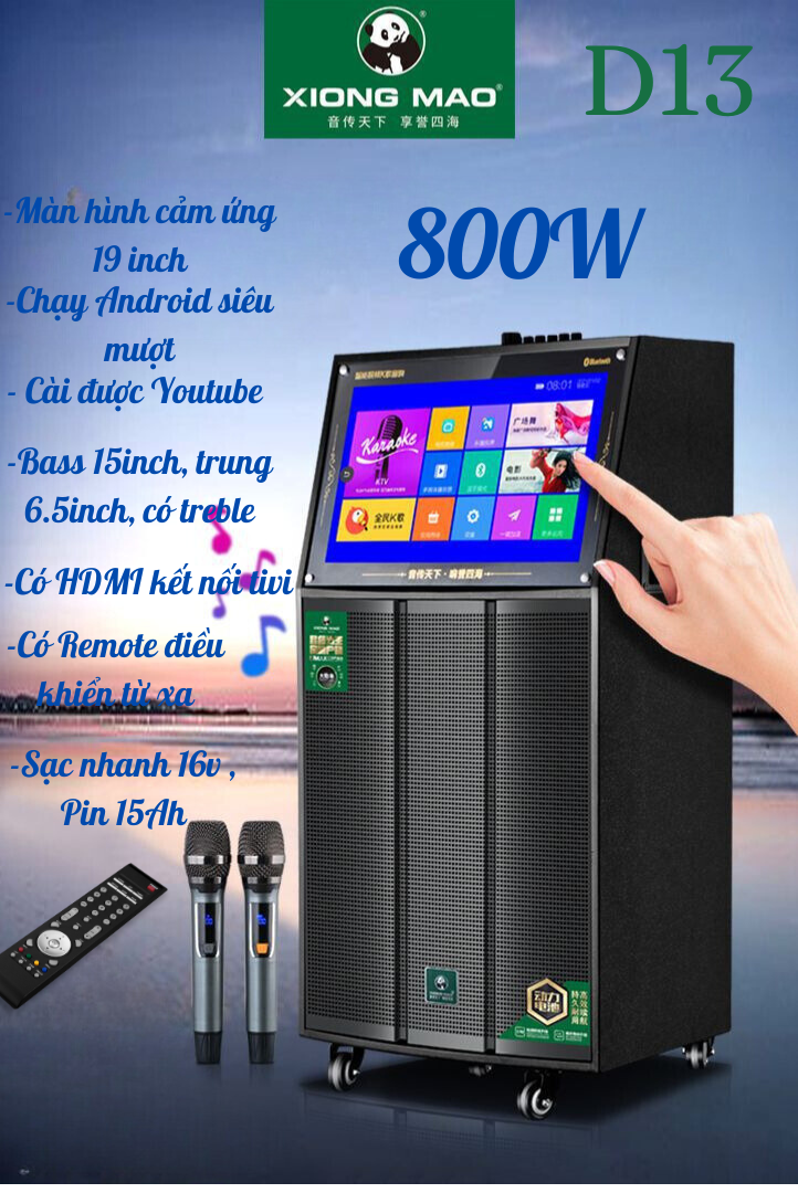 Loa Karaoke Xiong Mao 800W kèm màn hình cảm ứng Android Hãng Xiong Mao D13