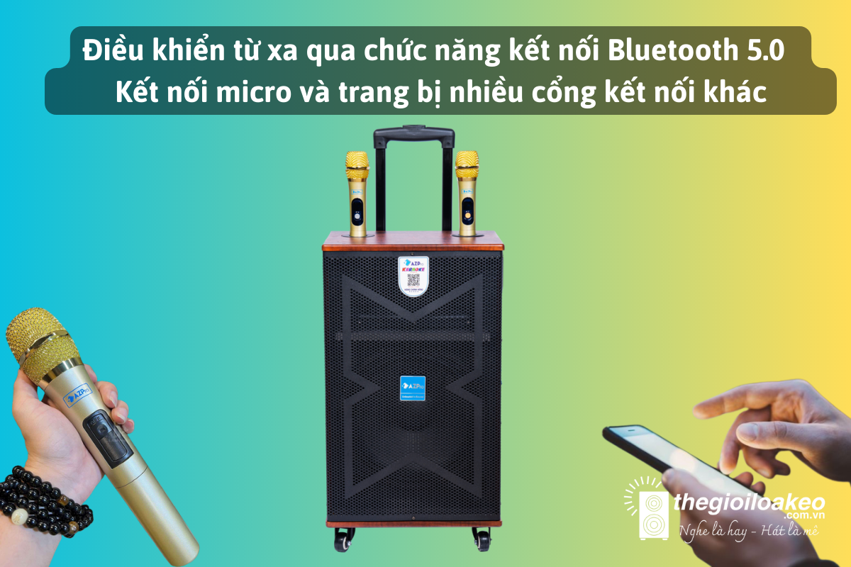 -Loa kéo di động AZPro AZ-1295A có khả năng kết nối Bluetooth từ xa với khoảng cách hỗ trợ lên đến 20 m từ các thiết bị di động (như smartphone, máy tính bảng và laptop).